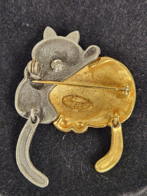 Danecraft two-toned dual cat brooch with dangle tails.