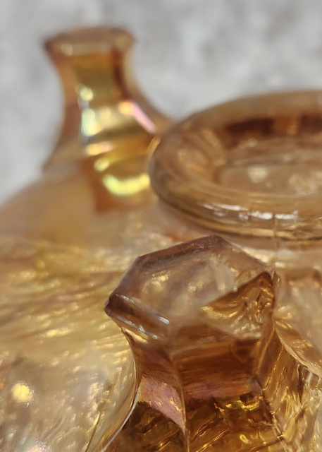 Imperial Glass Marigold Carnival Glass 3 footed bowl. In the Windmill pattern, also known as Double Dutch.